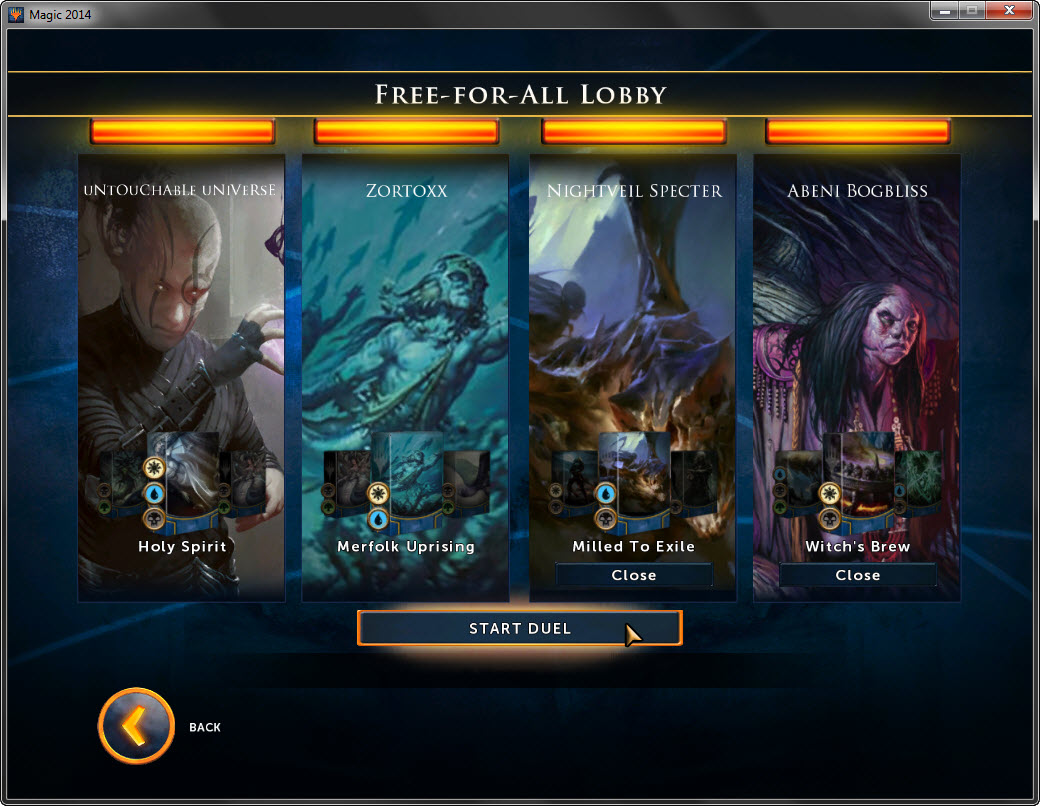 Fantastic work MC Brodie! We all appreciate your contributions! As a result of your effort, the four decks above are complete and available for download. I've included Windborn Muse by using the ever-controversial code for Ghostly Prison.