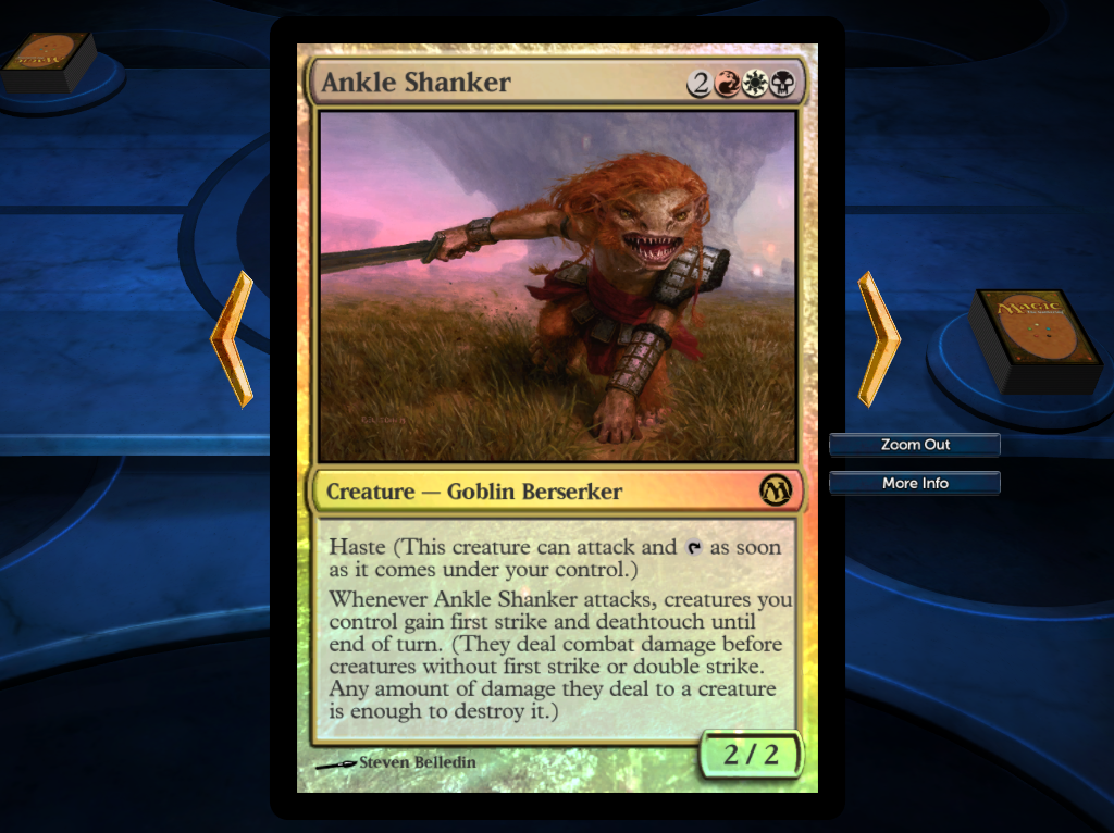 I just want to thank everyone for all the helpful insight. Also, I have a deck called Mardu Ascendancy I've be playtesting for a few days that features cards from Khans of Tarkir. It's a brutal and powerful Aggro Deck centered around Sorin, Solemn Visitor and Zurgo Helmsmasher. Ankle Shanker makes this deck even more deadly but I've ran into a problem. I can't figure out how to code the RAID MECHANIC for Mardu Skullhunter. During testing I used the code from Ravenous Rats and only sent him to the battlefield after I had already attacked. But know I want to publish the deck with the keyword fully functional. Would anyone here be willing to make the Khans of Tarkir keywords. If someone can just make the codes that would be great. Creating one of each card with a keyword would be awesome! All of the cards in the screenshots above are fully functional. I plan on releasing this deck as soon as I have the RAID mechanic.