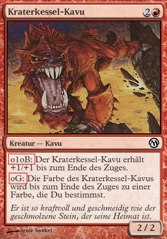 There are formatting errors in your new Kavu deck cards in the French and German localized text code. They all look like this: