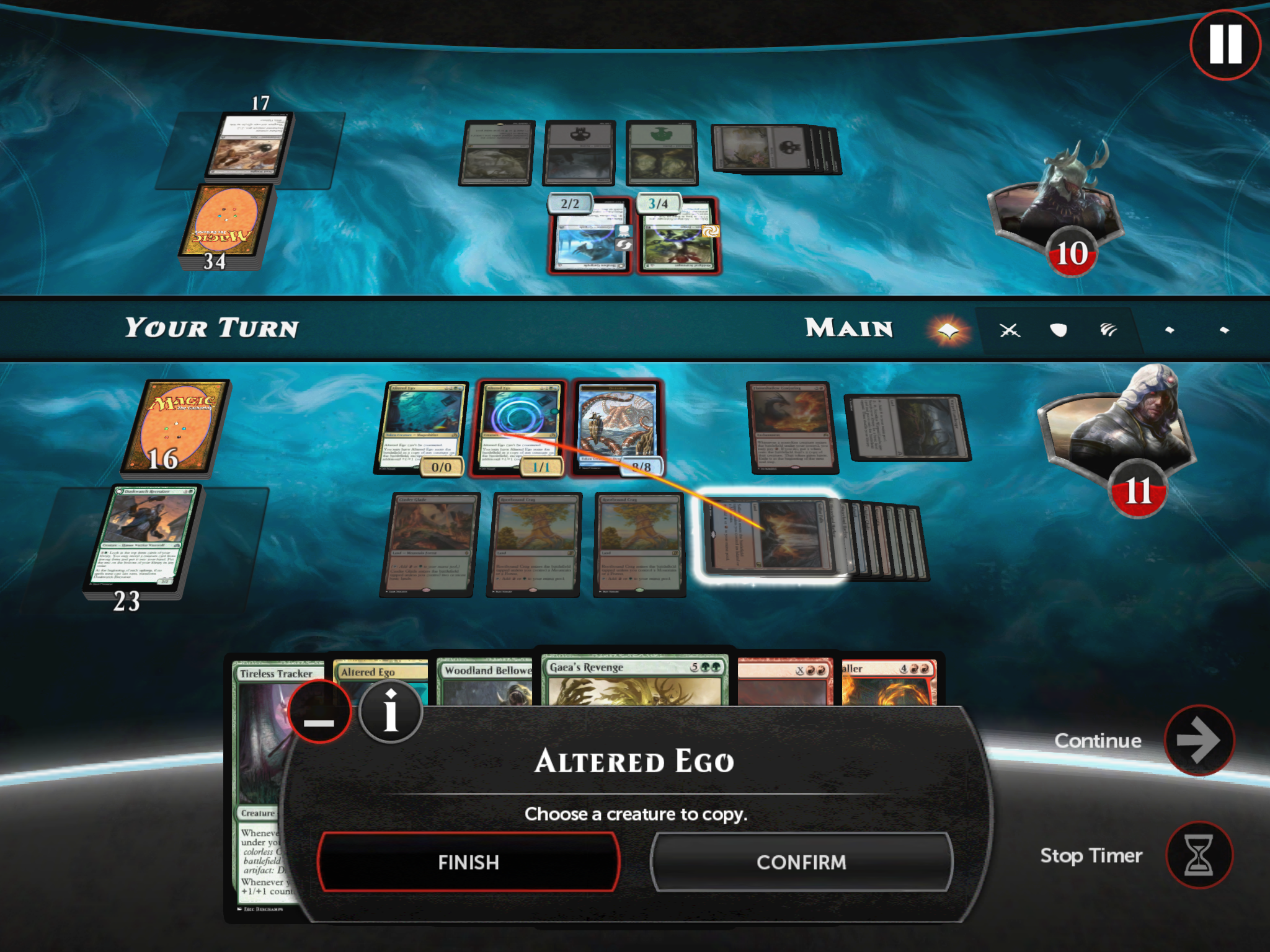I tried it again, this time casting Altered Ego with X=1 and not selecting any creature to copy. Altered Ego ETB as itself with a +1/+1 token on it. Flameshadow Conjuring then triggers, putting a token of that fresh Altered Ego onto the battlefield and then asking "Choose a creature to copy" (see screen shot). I tested choosing a token creature once and a non-token creature (other than the original Altered Ego). Both times the Flameshadow Conjuring token of Altered Ego worked and made the applicable clone. So this instance may be applicable to getting Deceiver of Form to work right.thefiremind wrote:I didn't think about that, either. I guess it would fall into the case we want if you choose to copy nothing with the original Alter Ego (as long as X > 0 it should survive).petercal wrote:It didn't occur to me until I saw the result: the game & Flameshadow Conjuring saw that Alter Ego (which cloned into Greenwarden of Murasa) as a Greenwarden of Murasa instead of a fresh Alter Ego & put a token copy of Greenwarden of Murasa into play. In other words, the copying took place before ETB so this situation is not like that with Deceiver of Form.
