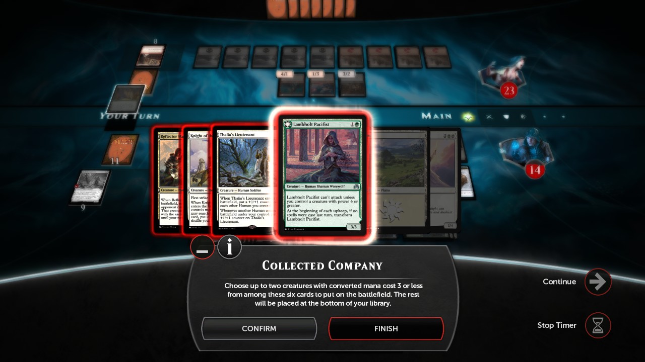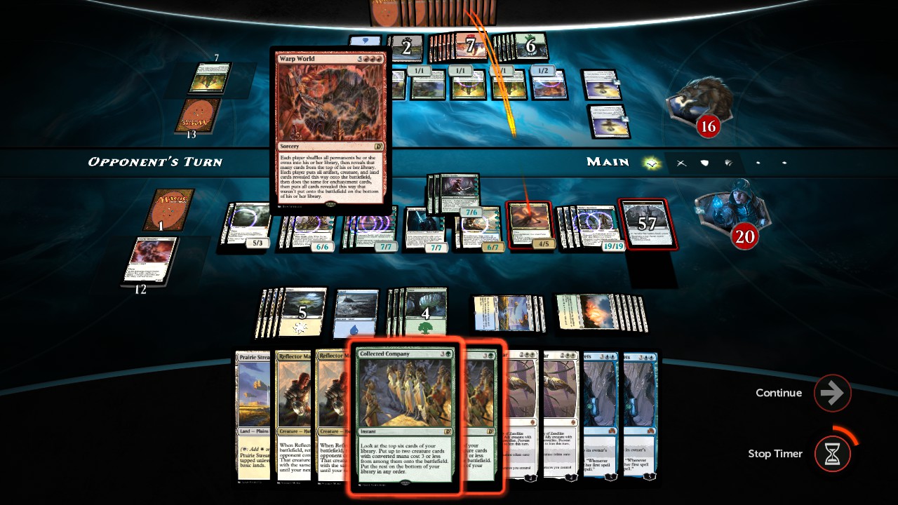 Of course it's included petercal, thanks for submitting the deck. Also, I witnessed first hand how overpowering the deck can be. The AI cast Warp World with an Archaeomancer on the battlefield and brought Warp World back from the graveyard four times. I thought it was going into an infinite loop until I realized I could use Reflector Mage to send the Archaeomancer back to their hand and prevent it from being played next turn. It seems I dodged infinity on that one. Lol! As you can see in the screenshot above, I literally had one card left in my library. And I thought it was so funny how Warp World was causing my Tireless Trackers to produce 57 Clue tokens and placing 18+ counters the Thalia's Lieutenant creatures I controlled. Lastly, the best thing about your card list is this: All of your cards were officially coded so the AI knew how to use them proficiently without me having to add tags such as <AI_AVAILABILITY type="in_response" response_source="1" response_target="1" /> and <AI_BASE_SCORE score="1200" zone="ZONE_HAND" />. Your deck is ready.petercal wrote:Thank you very much for modding efforts. I like to get into it myself, but got lost a while back. I am looking forward to your tutorial to figure things out.