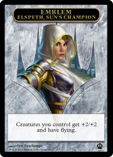 Question: Does the elspeth emblem have a regular card back or an ad back?