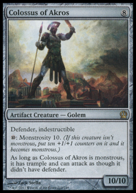 So just curious on who might be interested in this. Prior to the scans that various supporters have submitted I was passed along a set of images of the entire Theros set. After some discussion with the CCGHQ team it was deemed these images were unusable as they most likely were a scan of the Theros Fat Pack pages containing the card images. Even though they are not of the quality you should see in the CCGHQ team's release I was wondering if people would be interested in the images processed in a slightly different fashion than what the CCGHQ team does (but very similar)? I have attached one of the card images of what the results of a 200dpi card would look like. It may give the users wanting something better than the gatherer images something to tide them over till the Theros CCGHQ images are released.