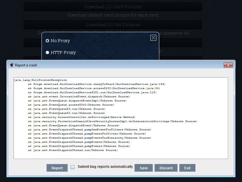 With your problem i think you should uninstall and make a fresh new installation. Allready got that issue and it resolved. But then i also made to fetch cards automatically for gaming and test purpose ( and for the game to create the right folders and then i put the correct cards in HQ in its respective folder. right now i doint use the downloader included.