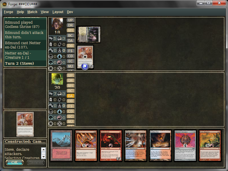 That’s nice. Cards in hand could be less colorful, highlight legal targets, enchanted cards, affected cards like non-flying creatures and Moat (or show a transparent Moat thumbnail on the corner of all non-flying creatures and an option to on/off these thumbnails).spr wrote:Edit: Clone: add a shadow, an icon or a color layer to distinguish cloned cards from original cards.