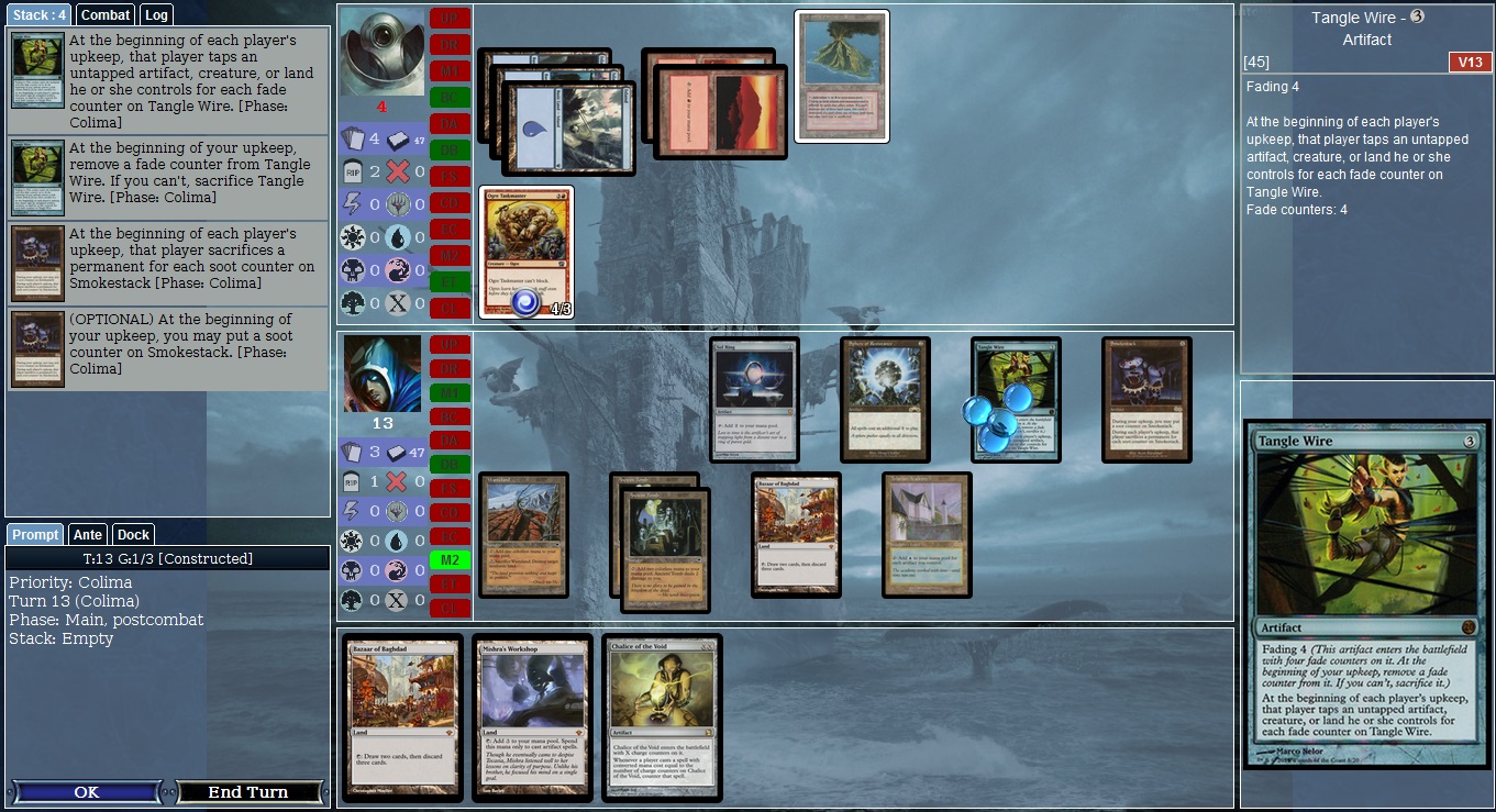 Wasn't sure where exactly to post this, but I'm playing the most recent desktop update of Forge (1.5.47) and have been trying to play two-player constructed locally with my wife using two laptops. Its working pretty smoothly aside from one fairly major issue that I can't seem to find a solution for.