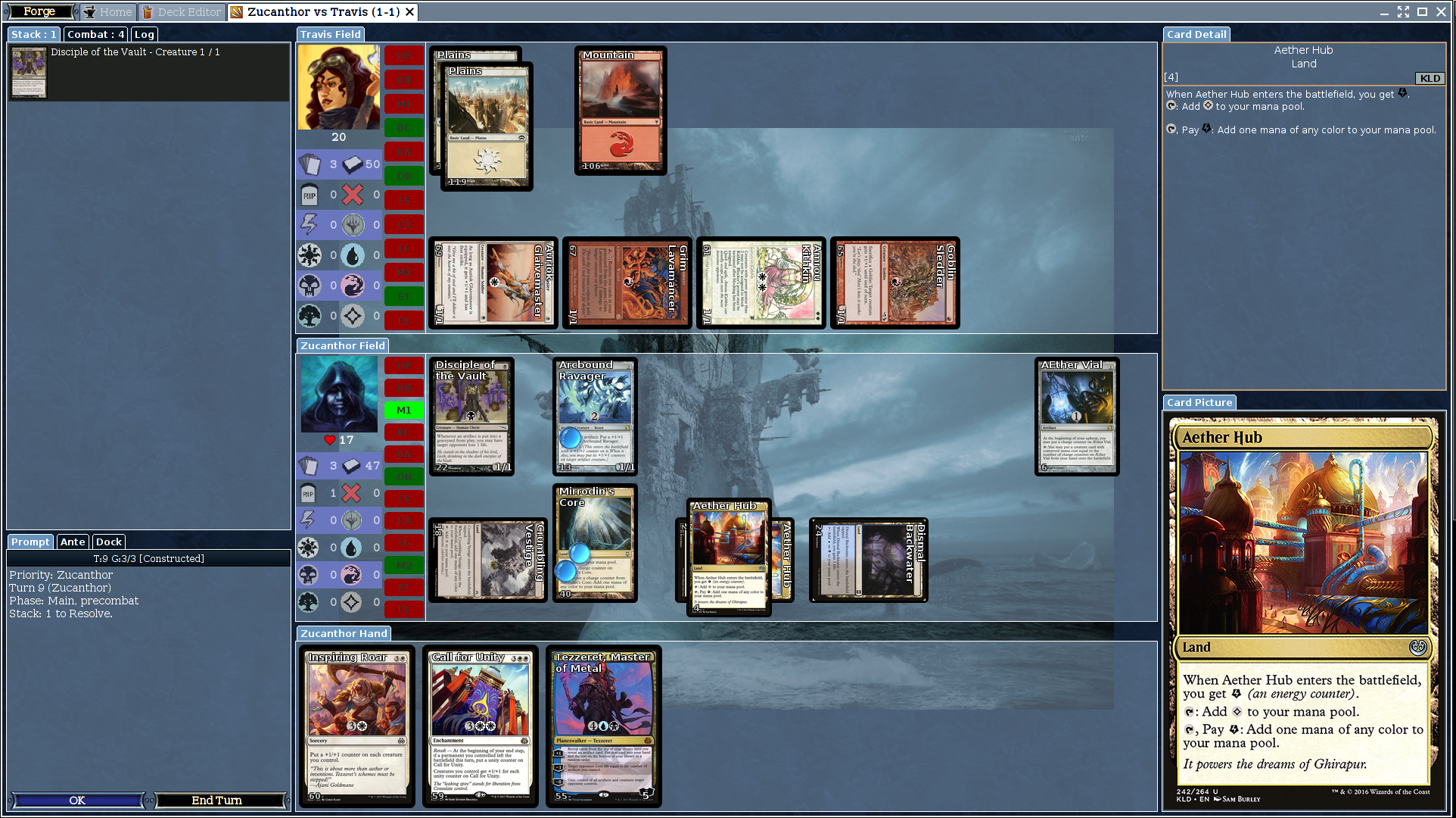 I have seen a couple people mention issues with Aether Hub here. For me, it periodically crashes when I activate Aether Hub and spend an energy to create colored mana. I have attached the crash report, screenshot and my deck file for review.