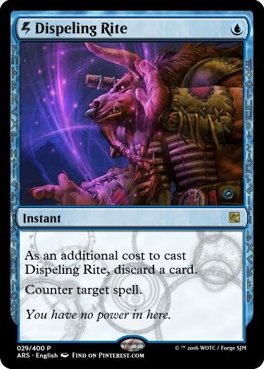 , to create a five color cycle. The blue one is Dispelling Rite (double L, check it). One mana + discard a card = profit.
