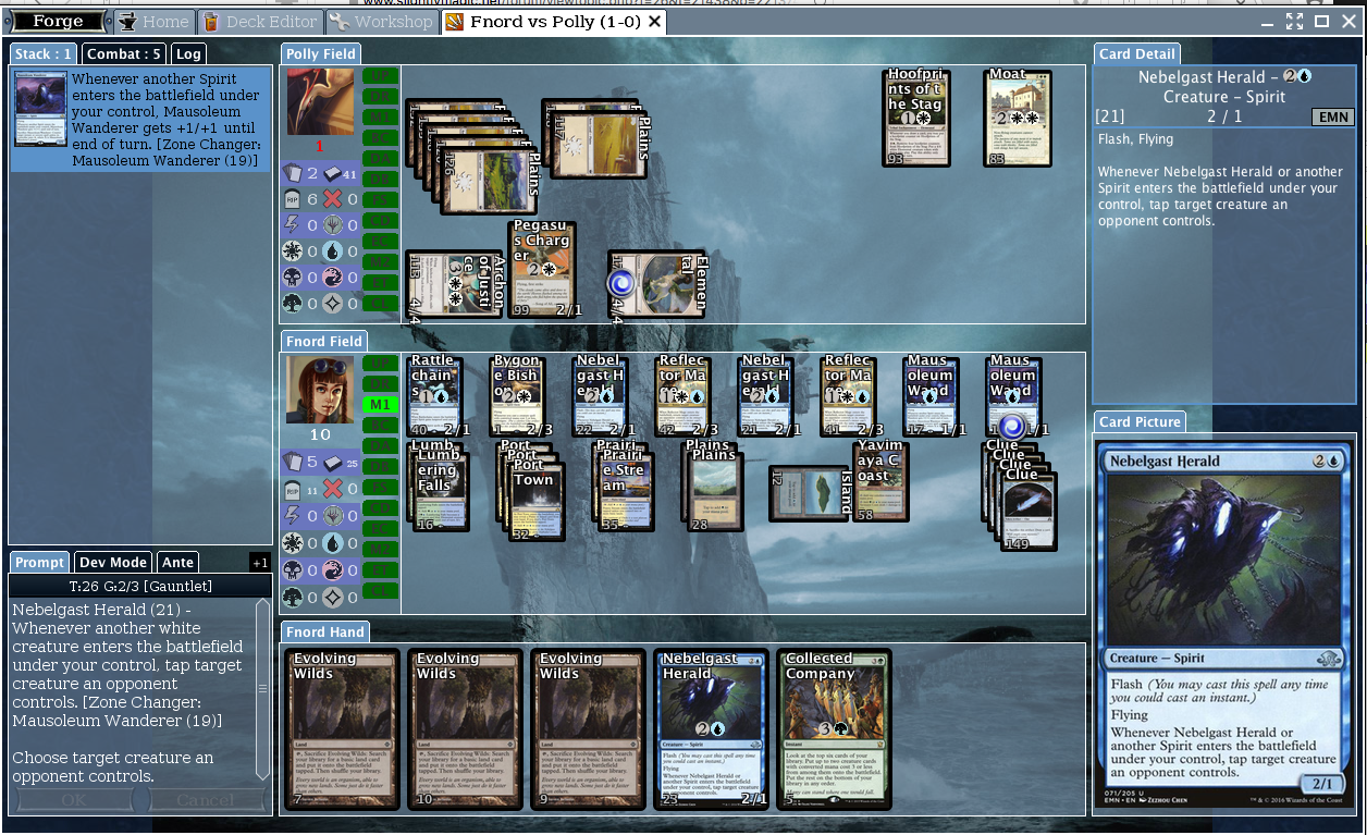The trigger on Nebelgast Herald functions correctly, but its text is wrong: it says "another white creature" instead of "another Spirit".