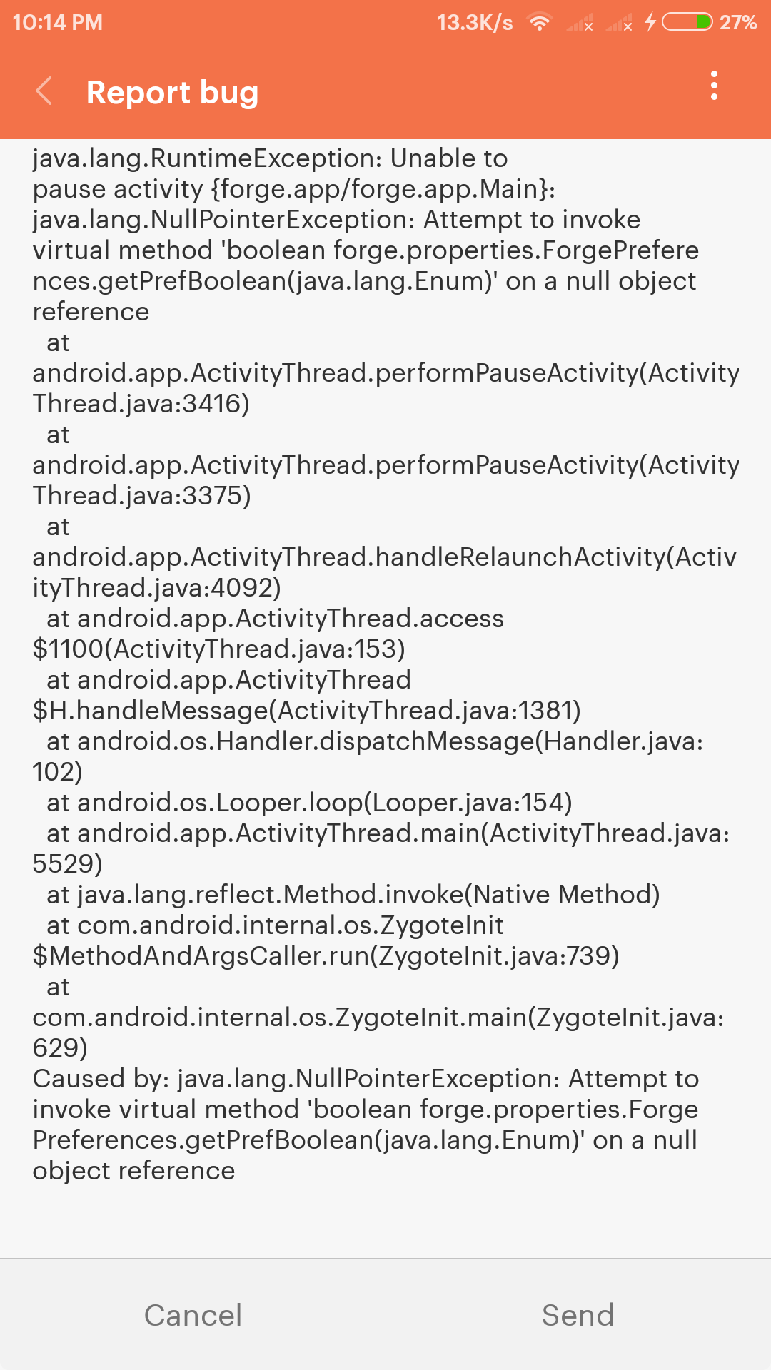 EDT > java.lang.RuntimeException: Unable to pause activity {forge.app/forge.app.Main}: java.lang.NullPointerException: Attempt to invoke virtual method 'boolean forge.properties.PreferencesStore.getPrefBoolean(java.lang.Enum)' on a null object reference