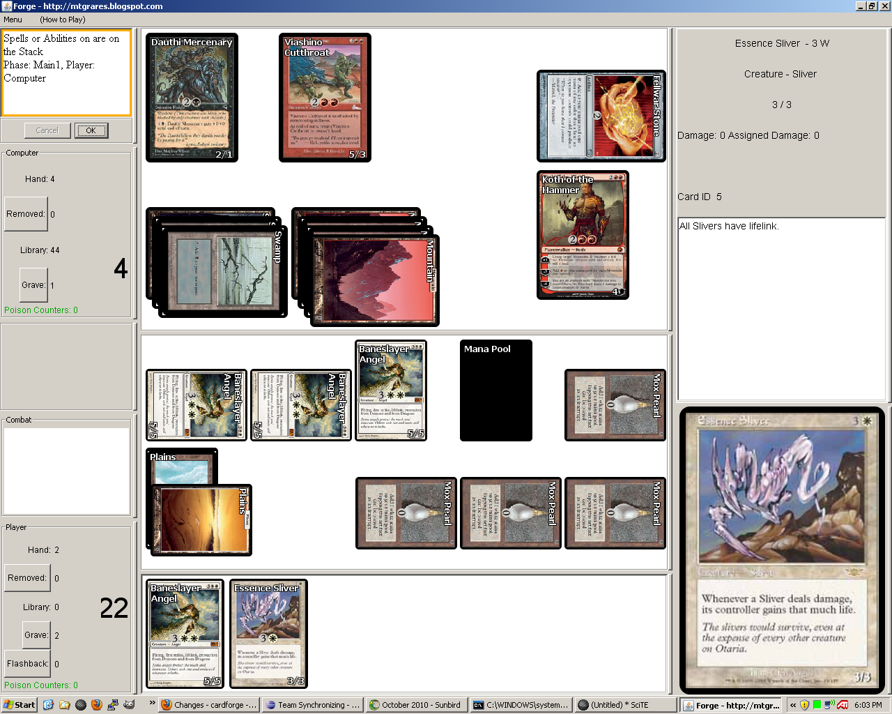I second this. And Goblin Lackey also triggers twice.Professor wrote:Wow, that IS the artifact version! But I was playing Loxodon Warhammer when I got the error. I'm sure all lifelink cards are similarly broken, though.timmermac wrote:The artifact version that you are referring to is Behemoth Sledge.