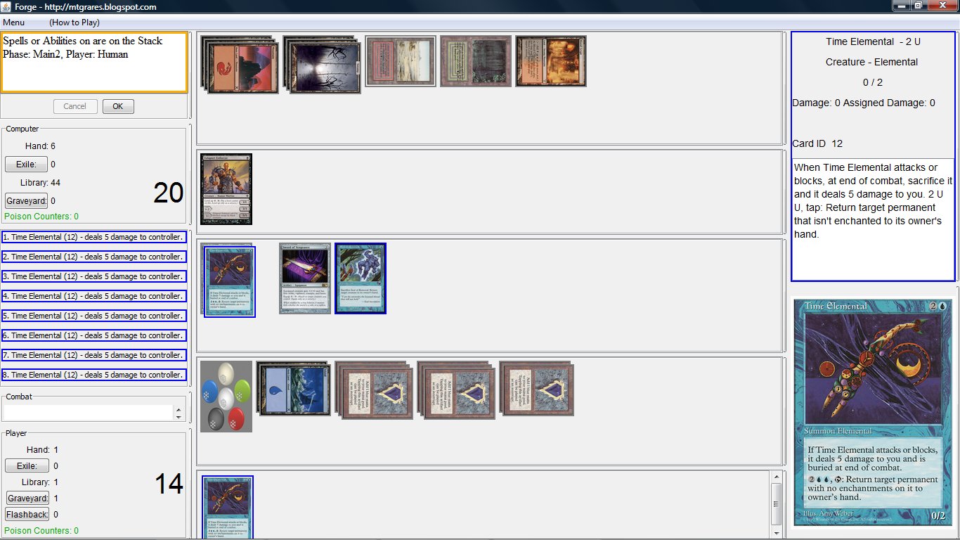 Not exactly a bug, more like a "it really sucks at deciding how to attack." We do improve the AI slowly at a time, Combat (in general and for the AI) are ripe for improvements soon.jeffwadsworth wrote:Using 3332. Note the attached picture. The AI did not attack during the last 2 full turns. All AI creatures were in play for at least 4 turns and attacked fine before the last 2. The blank cards are 2/2 Wolf tokens spawned by the Wolf-Skull Shaman. During the last 2 turns, it cast 2 Glimmerdust Nap, Whipcorder, Wall of Blossoms.
