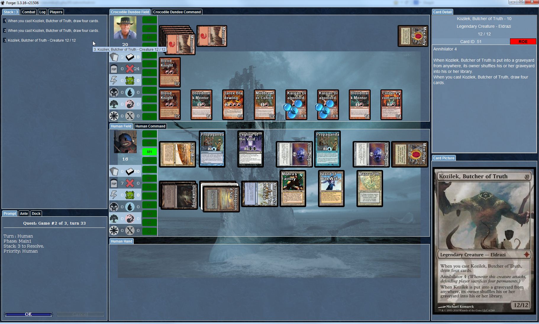 Already fixed for the next beta. (est. release date: May 31)Doerk wrote:Appeared in this version for the first time: When casting Kozilek, Butcher of Truth its effect "draw four cards" is triggered twice (see screenshot). This bug is reproducable.Forge_Kozilek.jpg