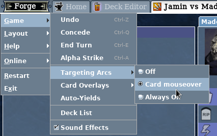 The arrows are still present, you just need to enable them.Nekoatl wrote:There doesn't seem to be any way to identify which blockers have been declared to block which attackers after the first 1-2 dozen or so attackers listed in the Combat panel. If the arrows aren't coming back, might I suggest putting a note in the card text similar to how attachments are mentioned and/or providing a scrollbar in the Combat panel similar to the one in the Log panel?