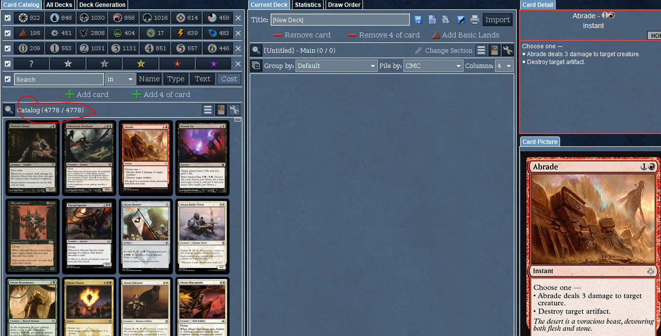 Could you upload your forge.log?nssantos wrote:I just downloaded again, and it remains the same. I took a printscreen to show here.friarsol wrote:I would recommend redownloading the package.nssantos wrote:The main post this thread say it has 17408 cards implementeds, however my forge catalog show only 4778 cards. Do I have to download another cards?