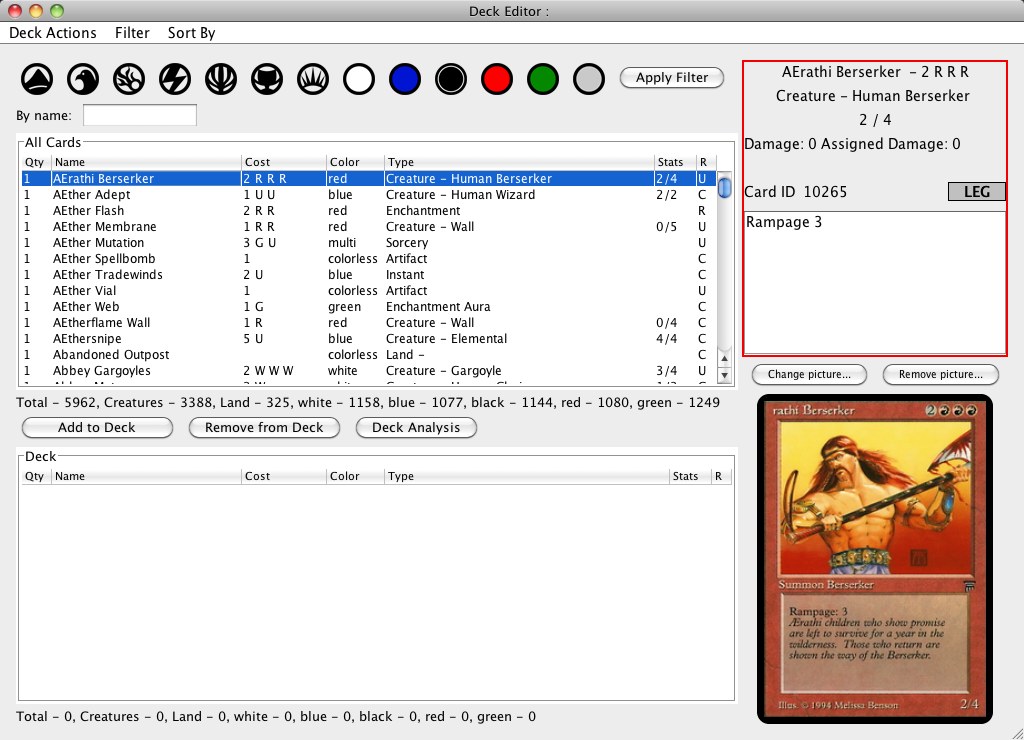 I like the buttons better at the top. It's more intuitive to have the filter buttons at the top since they affect only the top list.Chris H. wrote:We are getting close to the next beta release. I made another adjustment to the deck editor. Do people like this one best?
