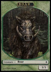 Been playing a deck that uses Brindle Shoat, which puts out a 3/3 Green Boar token. There was no image, so I created one. Thought I'd share it. It ain't perfect, but it'll work.