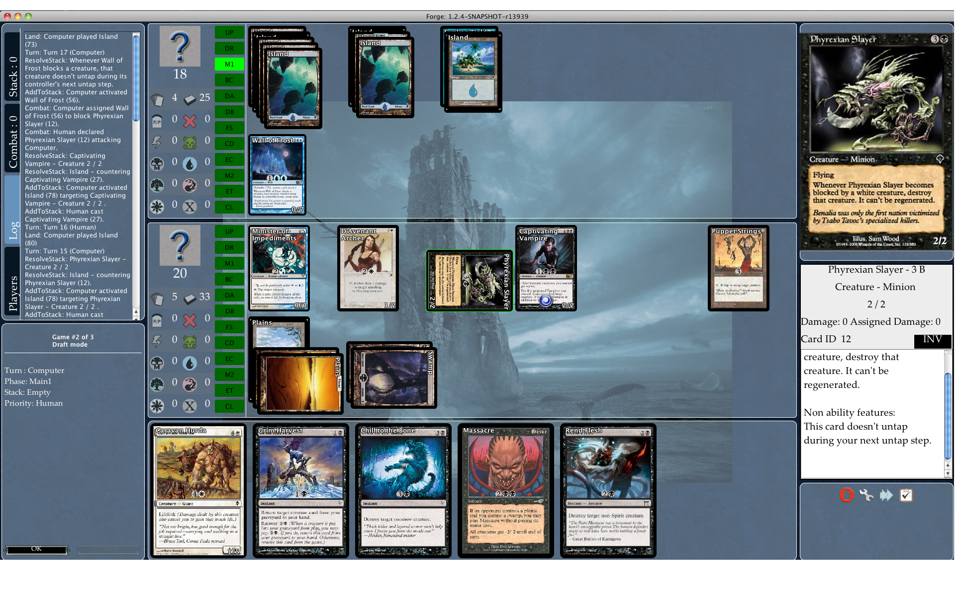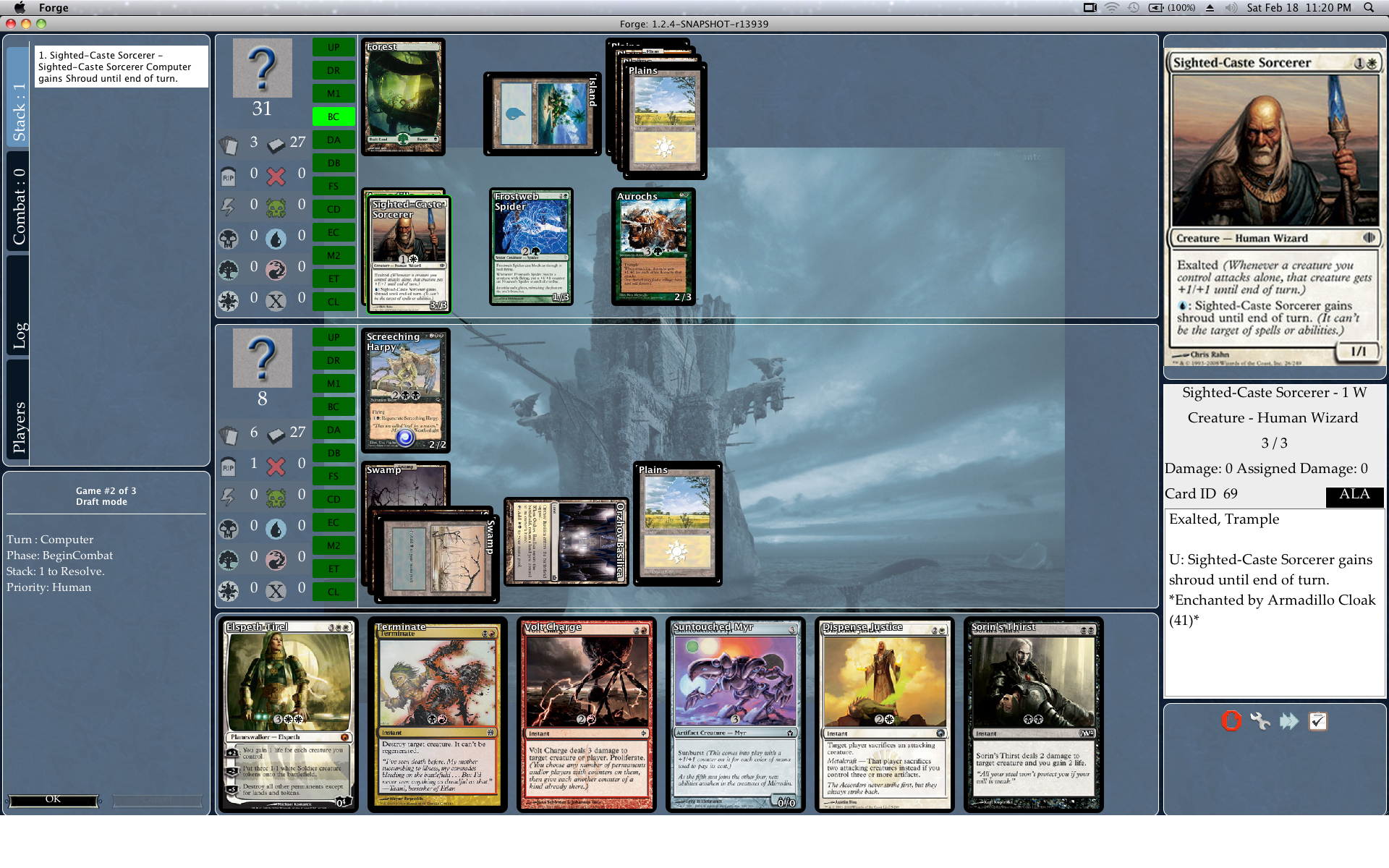 The bugs reported about Grand Architect were in the Manalink thread, not in Forge (search checks the full forum, not just the thread you're in). Forge has never had Grand Architect because of the mana use restrictions which are unscriptable at the moment. The closest available to Forge is a version in the half-implemented cards thread that works perfectly except that the player must restrict themselves with regards to the mana use.jimmycolorado wrote:A couple things I've noticed, guess they belong in this thread?