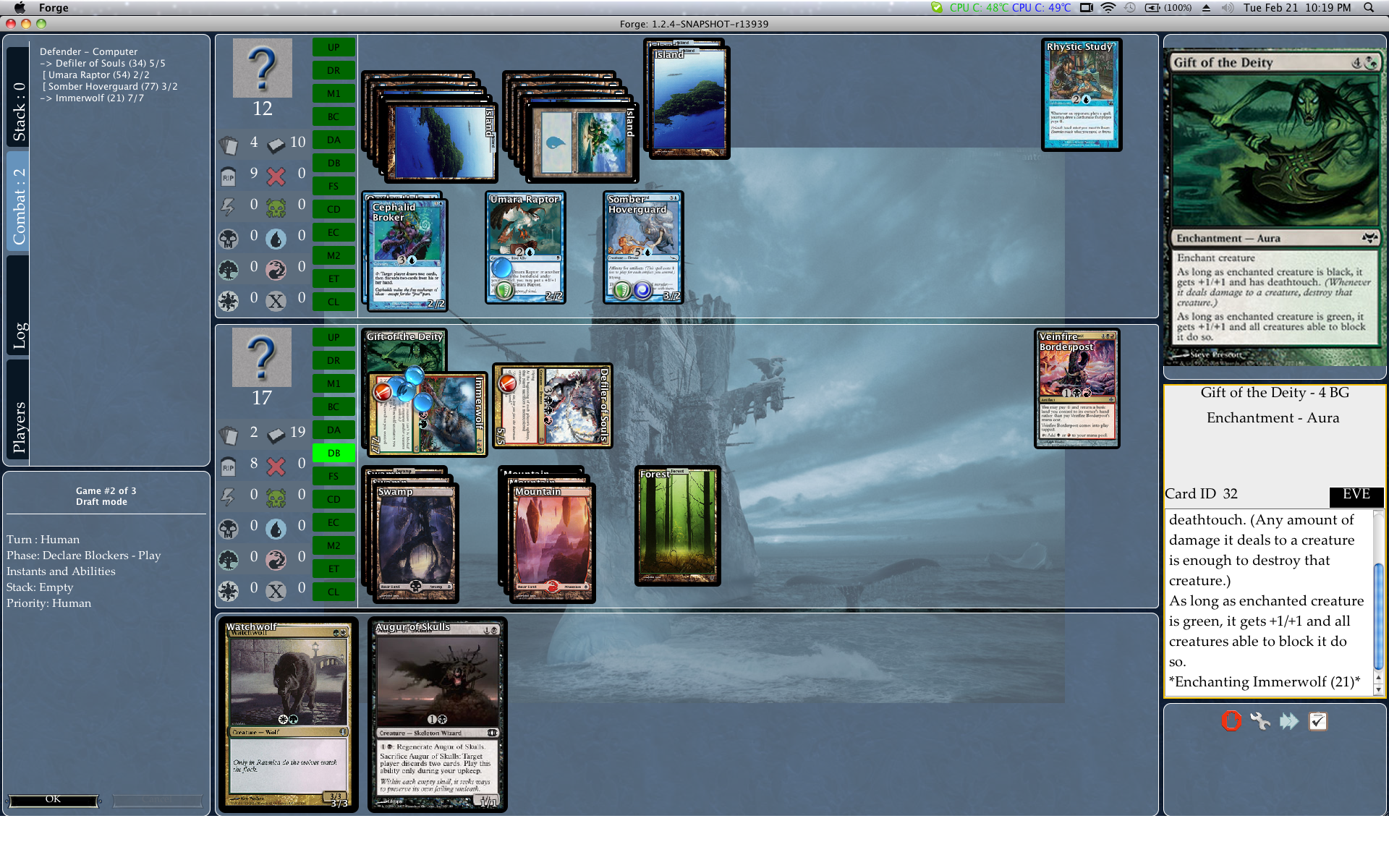 The card Gift of the Deity seems not to work quite as it should - cast on my giant Immerwolf and when I attacked to AI blocked my other creature with 2 blockers and it's 3rd creature did not block at all. Thank you