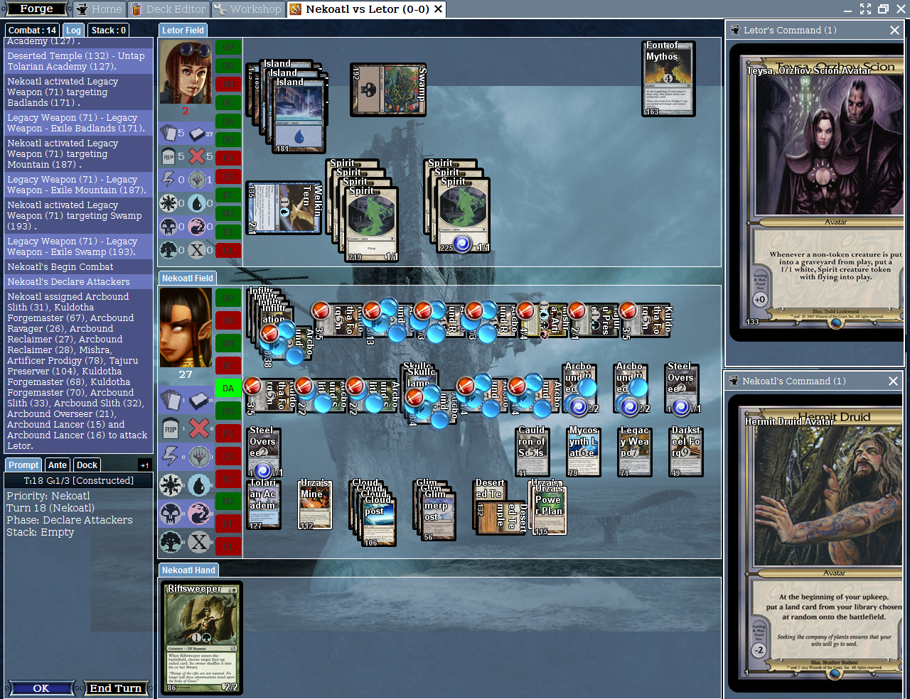 2) How do I display the Command Zone in Forge? Currently, Commander and Planechase (what I've tried of them) are annoying, as I can neither see nor use my command zone.