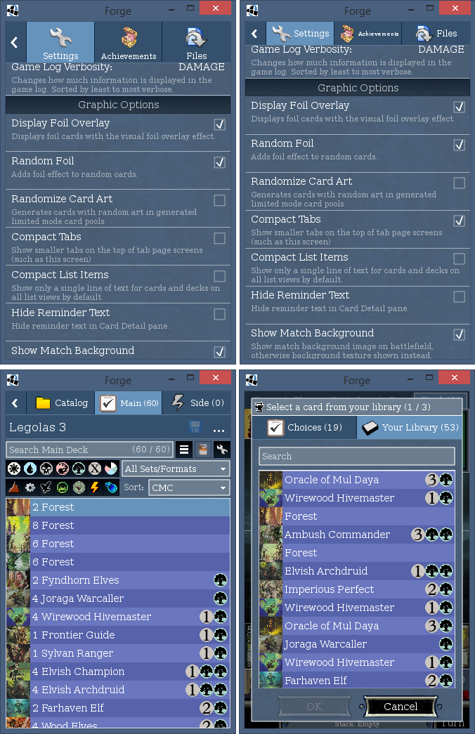 Agetian, yes someone (you?) mentioned it already. But now we're not talking about the "can't play cards well" dialog, but about that Forge does always play the same deck and refuses to play all others.Agetian wrote:However, since the AI does not sideboard at the moment, it's not an issue and these decks are completely AI-playable (even though some of them *do* show the dialog).