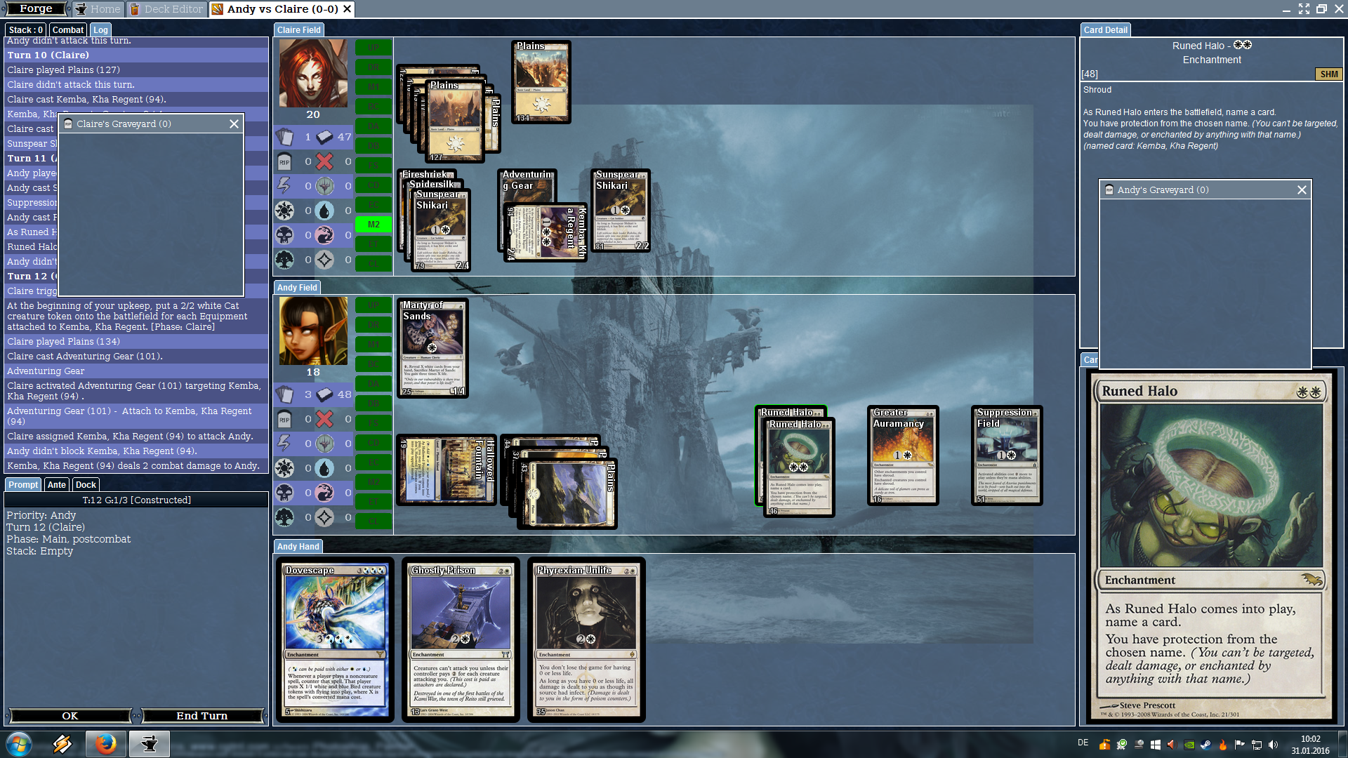 The other Runed Halo on my side is naming Sunspear Shikari. I assume that one works since the AI didn't attack me with its Shikaris.