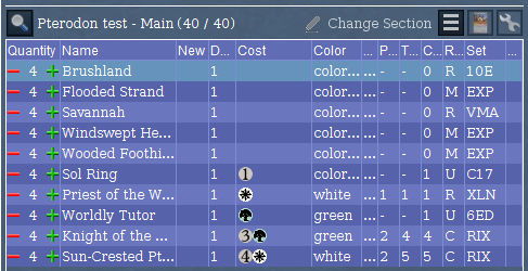 There's a new column in the deck editor to allow sorting cards in the same order used for assigning collector numbers. The column currently appears blank, but that's because we've hidden the relatively cryptic values it uses to sort. (Perhaps in a future release we'll put some meaningful visuals in the column.) When sorted by collector number, you'll see colorless non-artifact spells at the top, basic lands at the bottom, and all the in-between sorting goodness.