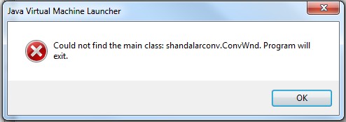 Could not find the main class: shandalarconv.ConvWnd. Program will exit.