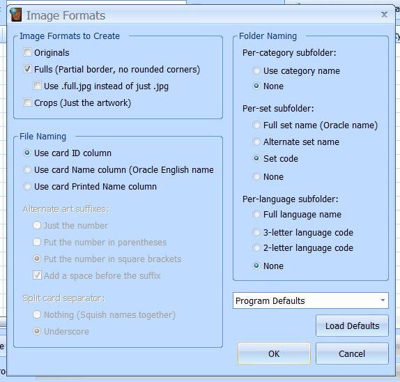 I'm looking for the exact set of options. Just take a screenshot of the Image Formats window how it needs to be set up for Wagic and I'll add it to the dropdown.