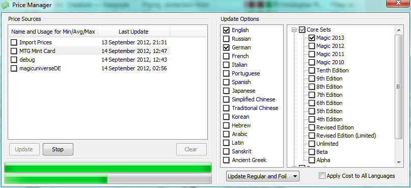 successfully set new price for 339 English and 332 German cards. 7 German and 0 English cards failed