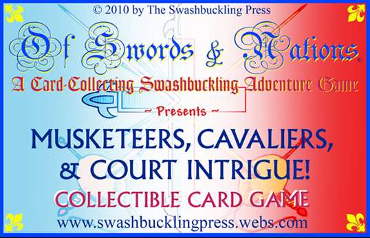 Just letting everyone know about a new Collectible Card Game, based upon Swashbuckling History, called "Musketeers, Cavaliers, & Court Intrigue." It has a starter deck (with 52 cards), and 8 expansion decks (which have 52 cards apiece).
