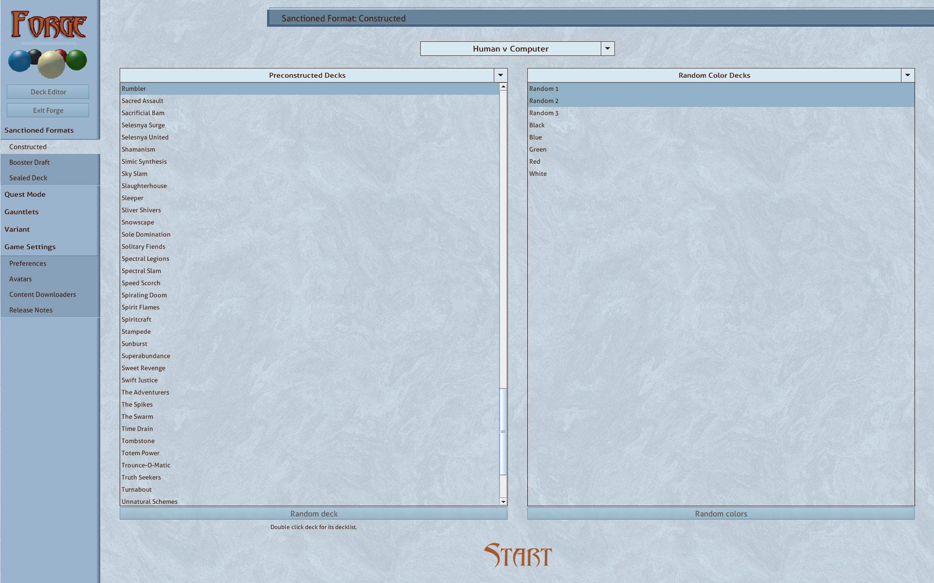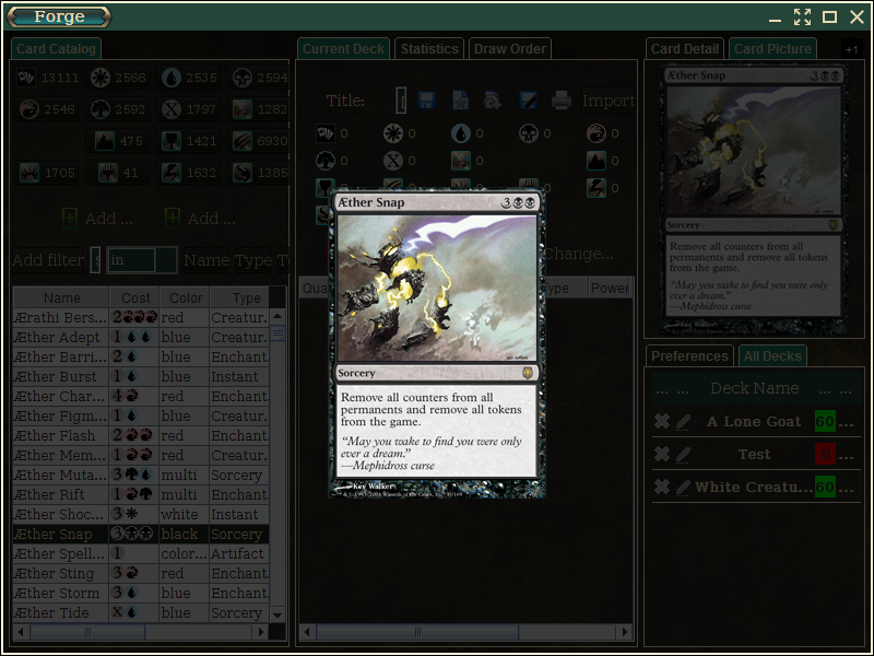 I have only one concern about it for now: I'm not sure if this behavior is unique to my system or not, but when in full screen mode, if a message box pops up asking me to do something (such as a choice box or a yes/no box), the main area of the Forge (the battlefield, everything) disappears as if minimized, so I only see my desktop and the choice box / message box on the screen. I have to manually click on Forge in the taskbar to restore it.