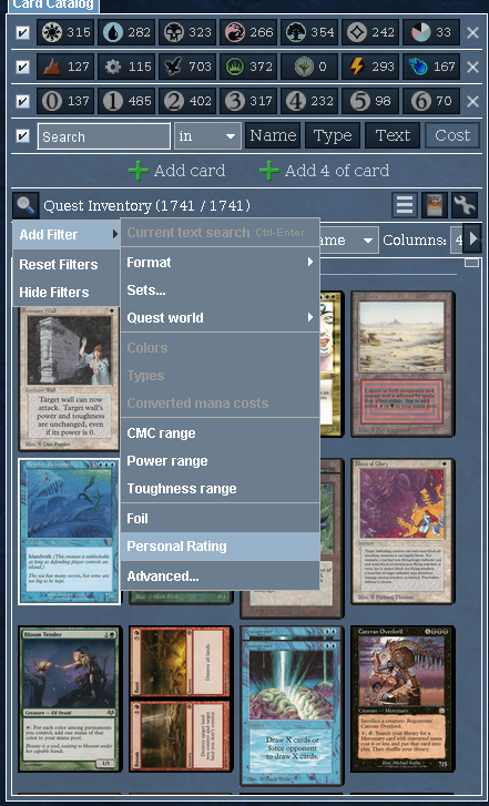 - Even though your modification appears to be local to Quest mode, the relevant filter (Personal Rating) confusingly appears in all the deck editors, including Constructed and Sealed, where it does nothing. It should ideally only appear in Quest mode. This might be at least in part related to the first point above.