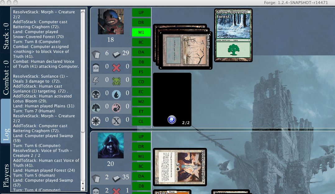 Hi - hey saw your message to post here. The bug I reported with the AI playing morph cards from the grave is still happening (your note said it was fixed), I downloaded 1.2.4-r14471 and tried a draft, first morph creature I killed got replayed from the grave. Thanks again