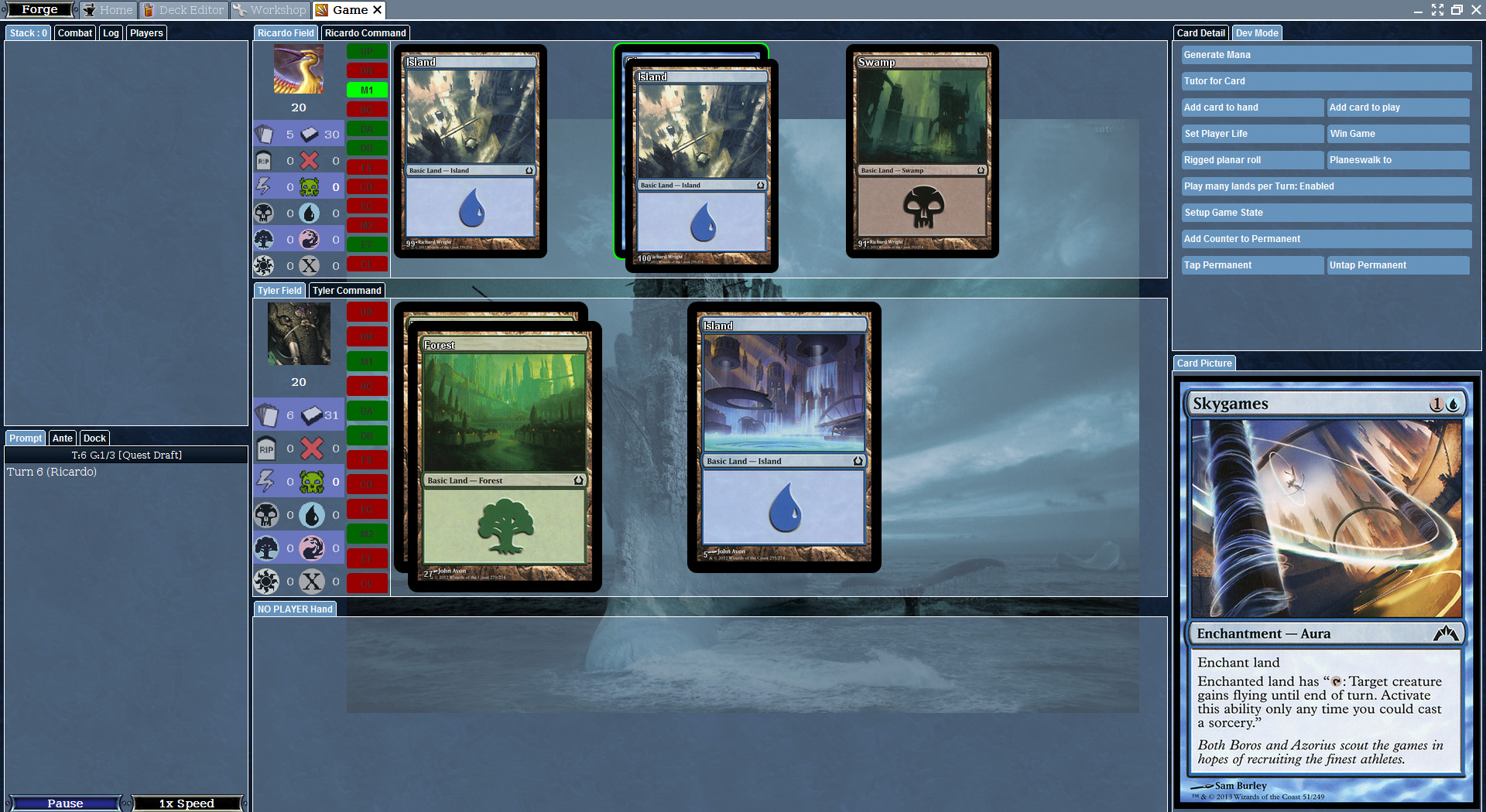 Fixed in r27218.Agetian wrote:r27216: Here's an easy-to-reproduce and serious bug that can lock up the game completely: if, in your Main phase, you click a spell card [with at least some mana cost, i.e. non-land] in your hand (to start casting a spell) and then accidentally hit E ("end turn") when you're prompted to pay mana, the game will first show "Cannot pass priority at this time" and will then get permanently locked up in the "Waiting for opponent..." state. Nothing helps except quitting Forge (or at least restarting the match by agreeing to concede).