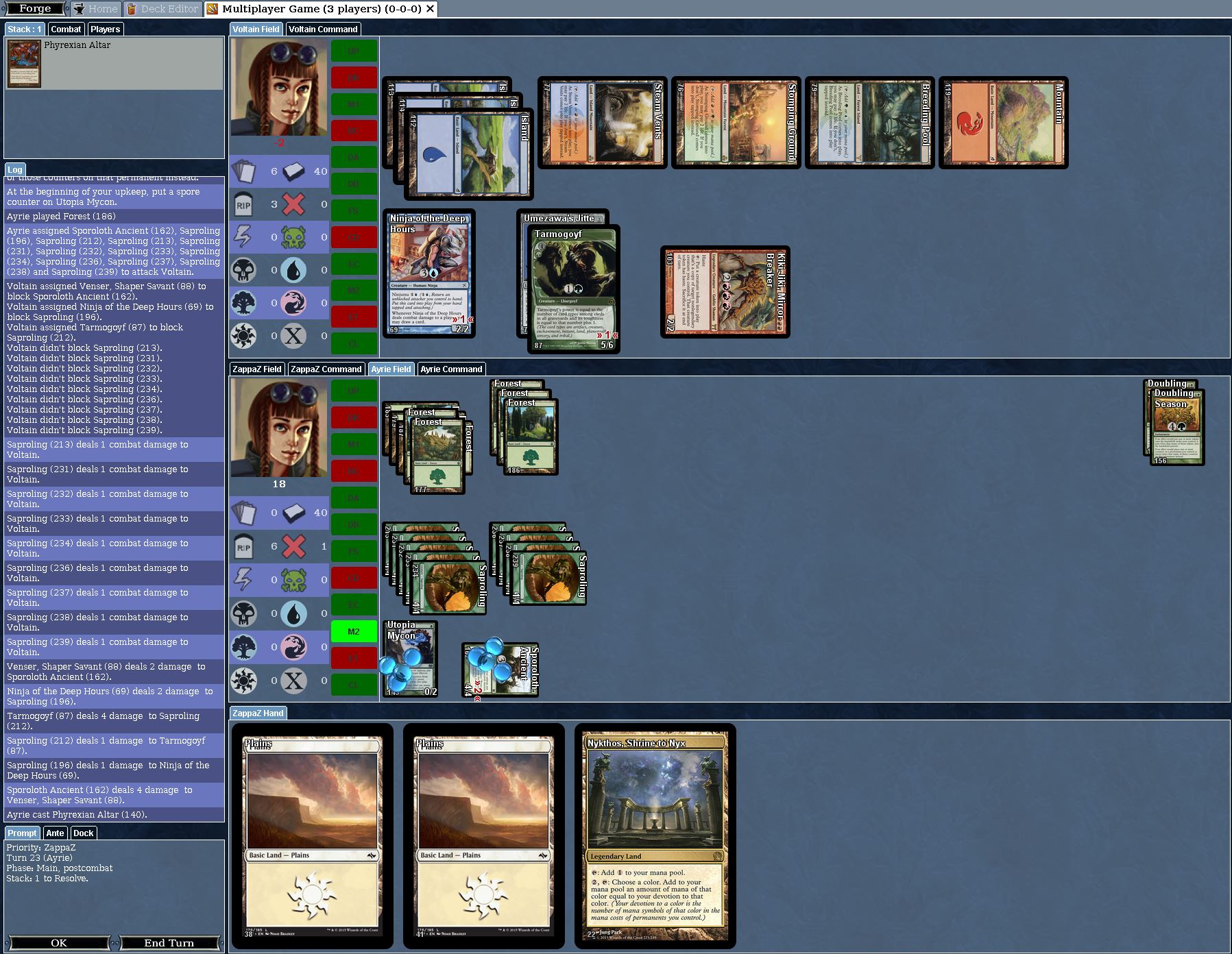 While playing a 3 player game one AI just killed the other AI and then tried playing a Phyrexian Altar but nothing happens when I press OK to resolve, the game is stuck like this.