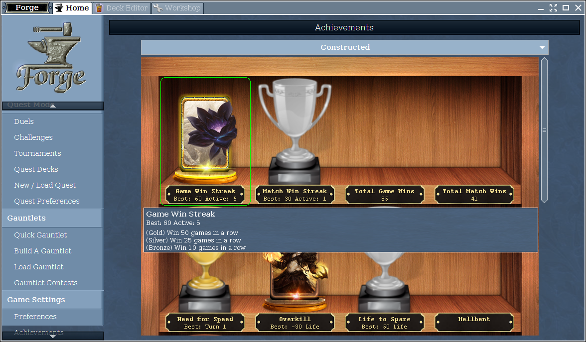 That would be sweetdrdev wrote:I've already covered all the alternate win conditions covered by the rules other than cards that say "You win the game" or "target player loses the game". For those win conditions, I'm planning to make a single, collection-style achievement where you earn a Bronze, Silver, or Gold based on the number of those cards you have successfully won a game with. I'll likely make Bronze require just one such card, Silver require 5, and Gold require 10.