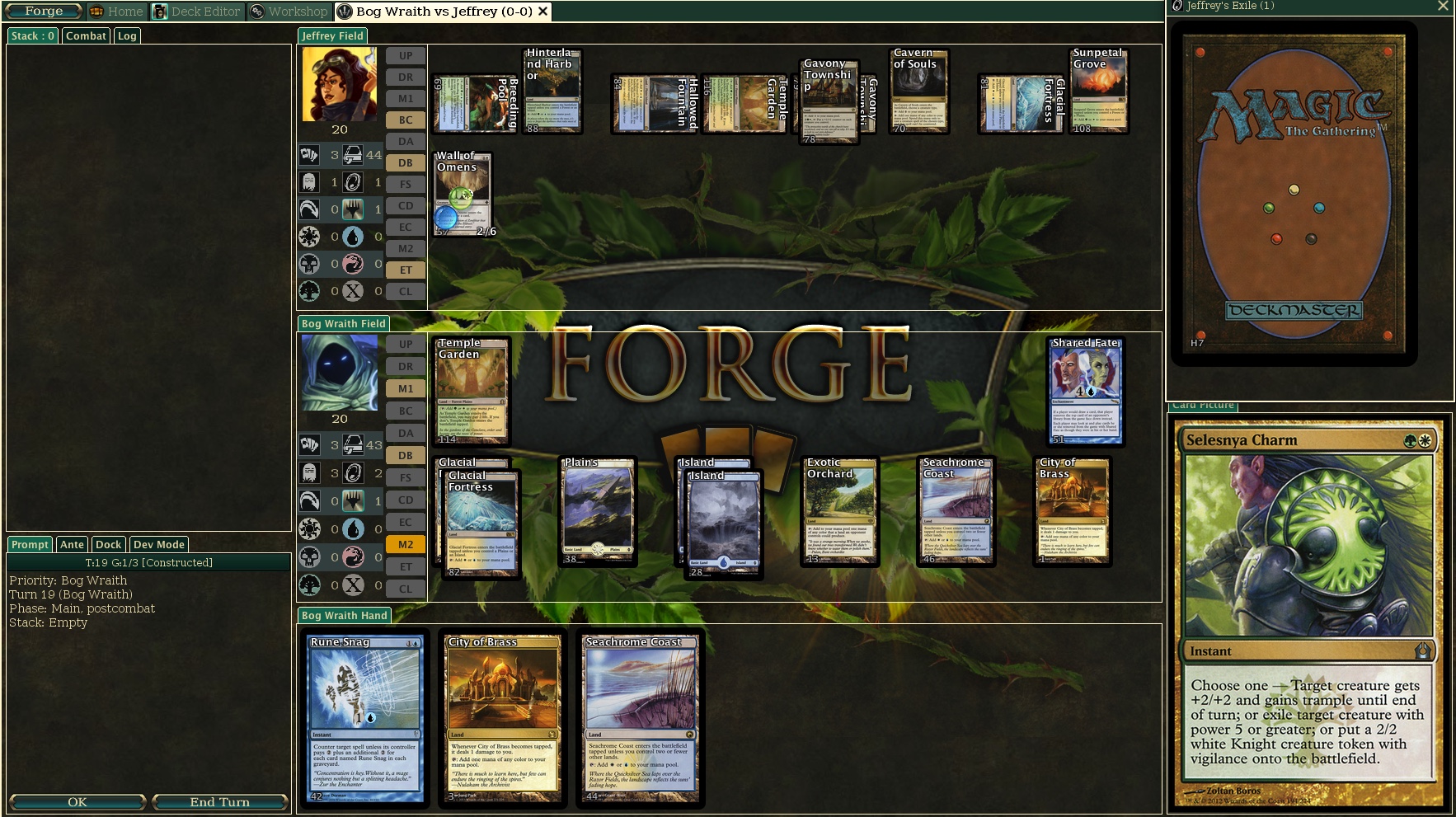 Yea the error was suggesting it was a Charm spell. Just haven't had an opportunity to look into it with OGW being released and the colorless mana hiccups. I think it's just an issue where the card isn't set to the faceup side fast enough before the Charm decision is attempting to be made. So you get a Charm decision for a face down card, which... doesn't have any.Bog Wraith wrote:Yet another crash with a Shared Fate in play & using the same deck list as I posted earlier in this thread. This time, I was attempting to cast the A.I.'s Selesnya Charm from exile when this crash happened. I clicked on the card in exile when this crash report was generated: