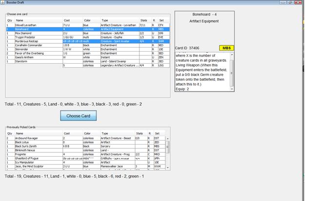 This screen shot is after 19 cards were drafted. My task manager shows that forge is using 310 megs of ram and using between 48 and 50% of the process. This is the second machine that I have tried to complete a draft.