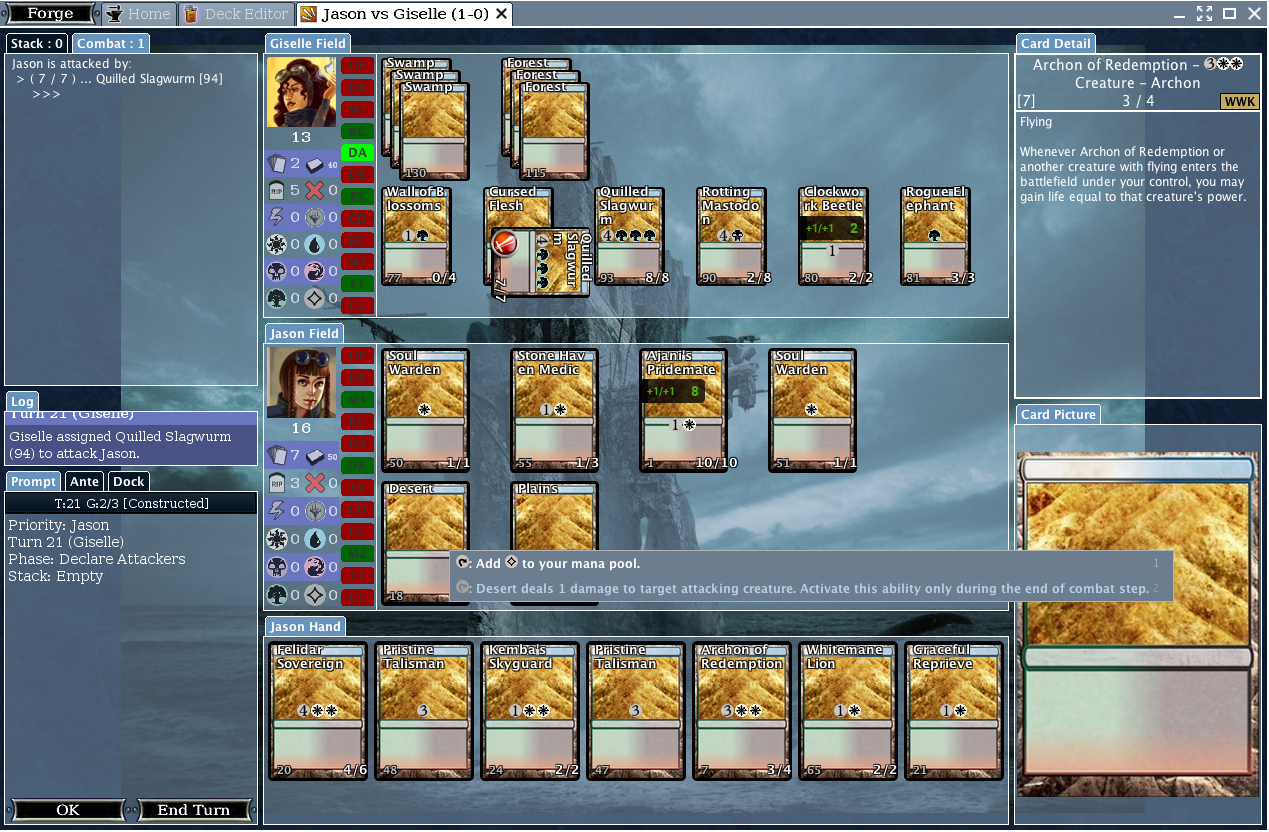 Here is a screenshot of the blocking phase:friarsol wrote:Please take a screenshot of both of these scenariosTheBandit wrote:It seems that I cannot use instants or abilities during the blocking phase when I need to declare blockers. If I try using anything my prompt just flashes. I can still use abilities and instants when someone else blocks though.