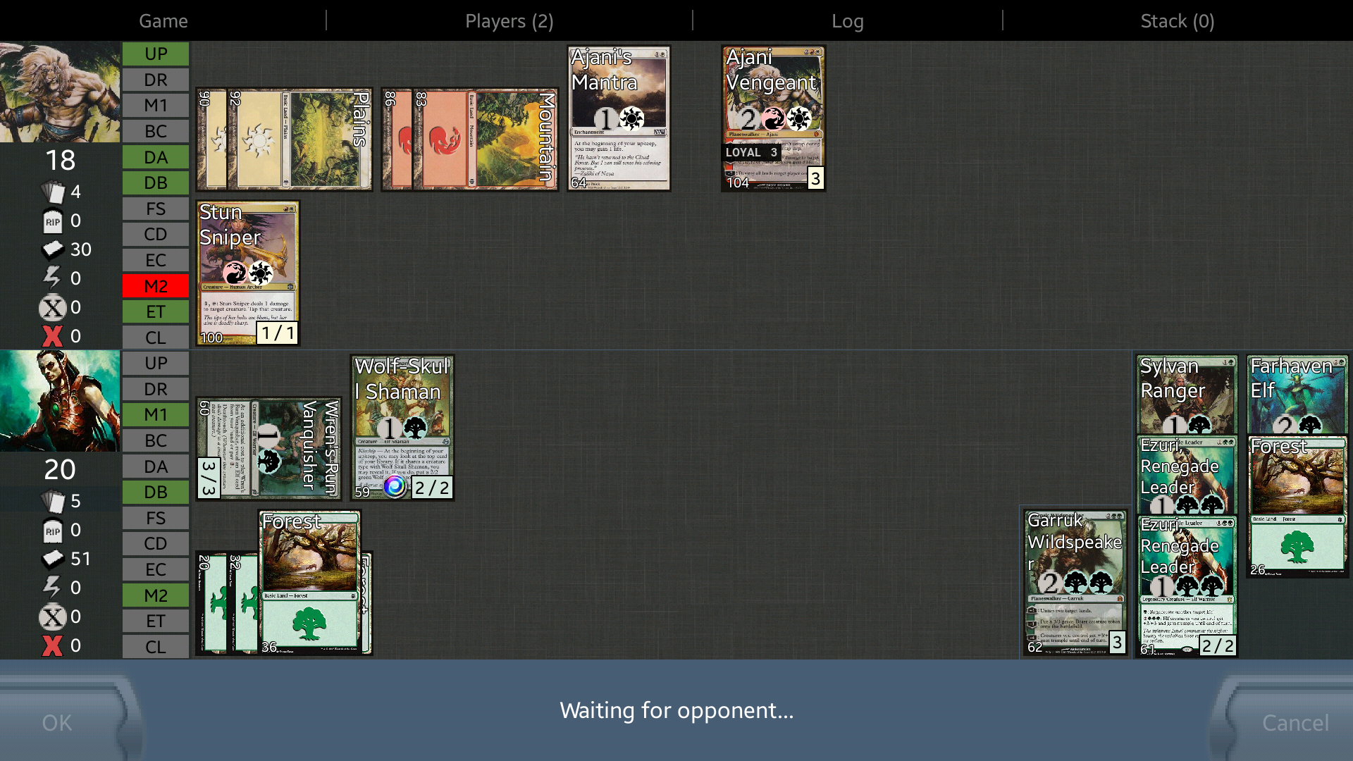 I was playing planar conquest, the AI cast Ajani Vangeant, then NPE popup. Im using Android svn R35213, It froze on waiting opponent...