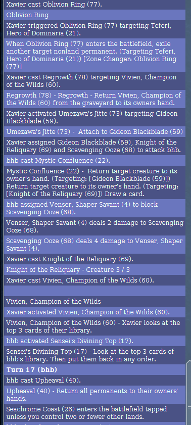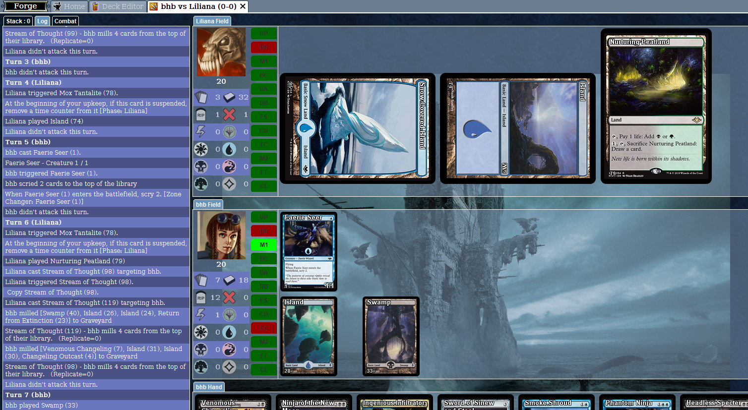 Not a bug, more like an observation. When a Mycosynth Lattice is on the battlefield, Forge becomes slower. And something strange happened one time, the AI would not play any cards even though it had enough mana to cast a spell (while a Mycosynth Lattice was on the battlefield).