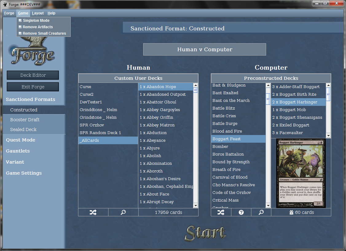 - Custom names for player and AI. I have always found it ironic that the AI gets to have a name but we the players are "the Human". So I will add a setting to let you personalize your copy of Forge with your name. Fed up with playing against boring Justin or Sharon? How about a match-up against Vildar Wild-eyes, Chicken Tumbler, or Devilish Neutron? Well now you can with a new feature that lets you specify the names that can be randomly assigned to the AI.