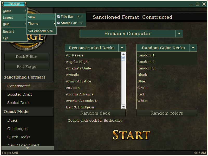 By default, yes, although both are hideable with F11 and F12 or the View menu items (see screenshot).Xitax wrote:Quick question, during a match am I now going to have two bars, one on top and one on bottom?