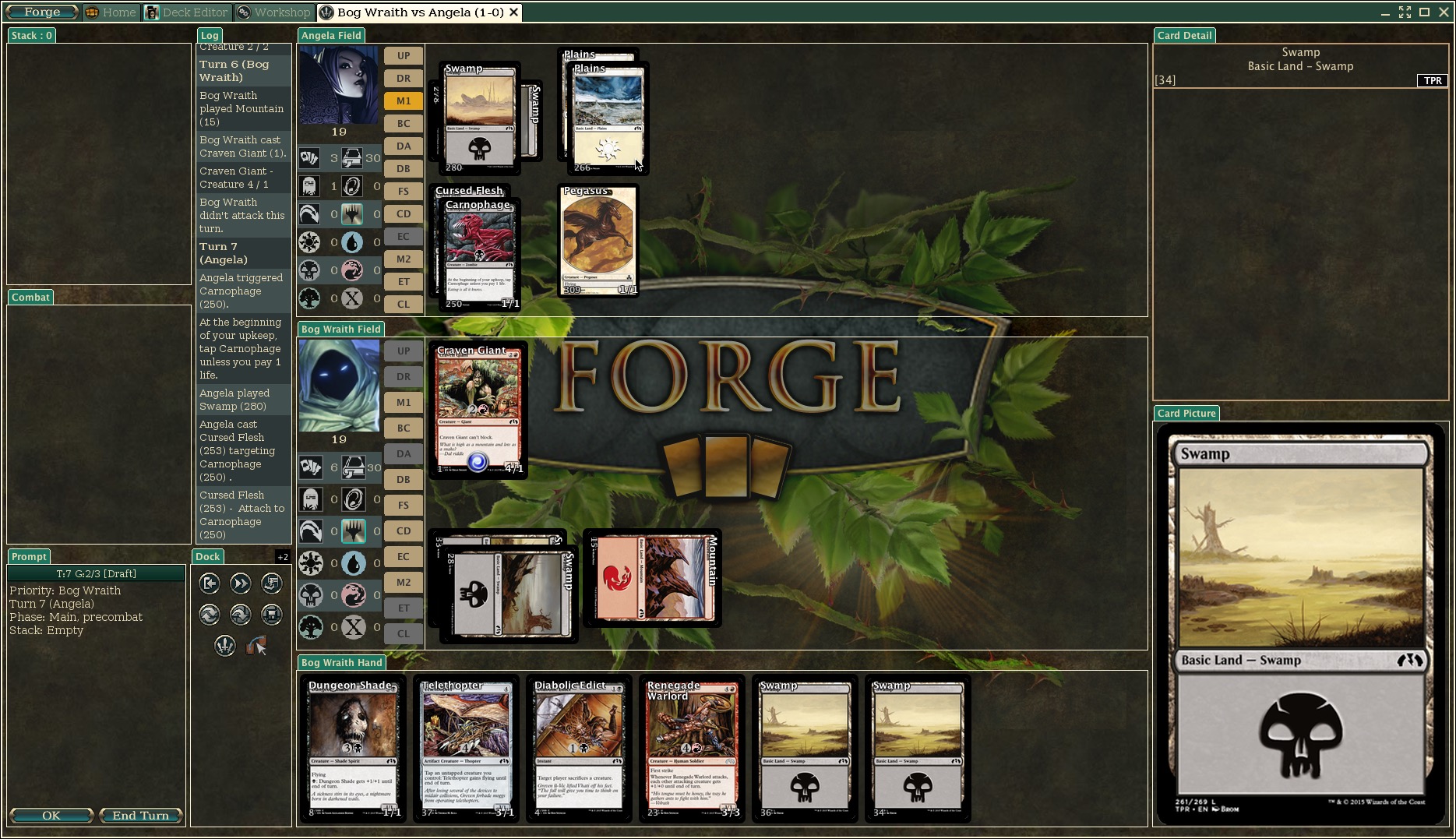 First off i want to say that Forge is the best & most consistently good AI driven MTG game I have ever played. The only one's that might be on par or at times a bit better are the recent versions of WotC's own Duels of the Planeswalkers, but they are coded with a minuscule amount of cards as compared to Forge. For the amount of cards playable that Forge posses, even given that the AI has problems playing a certain percentage of all those cards, IMO, Forge is unmatched in how good it plays as an AI opponent!
