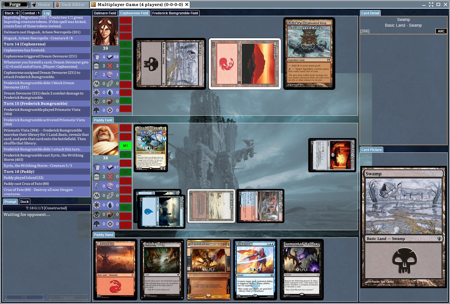 Forge 1.6.44 hangs on "Waiting for opponent..." after casting Crux of Fate