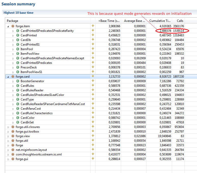 2. Reducing heap size has lots of potential and could speed up loading times and maybe slowdowns on some systems. The biggest chunk by far is the card class, because two copies of each card are loaded on start up (one "small" object for the deck editor and a "full" object for the game). Just changing a few ArrayLists to start as null pointers instead of empty lists reduced the heap space needed by about 2%.