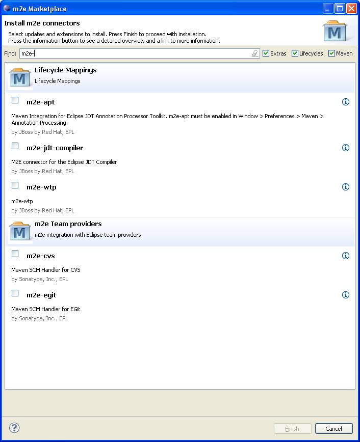 In the dialog window that opens, click Find more SCM connectors in the m2e Marketplace