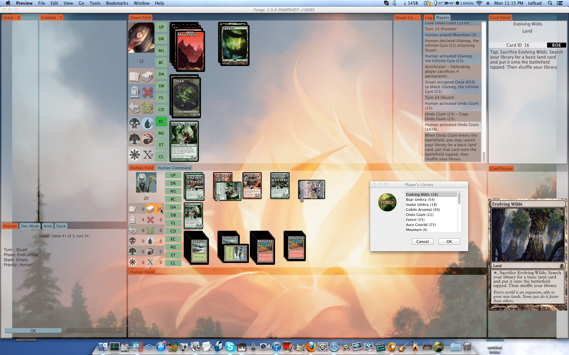 Option is not enabled - I was also under the impression this option does not work in the way I showed above where I was able to go from about 6 lands to 21 lands and draw only one other non land card (all with constant fetch and shuffle) - as it says "Minimizes mana lock in AI hands, giving a slight advantage to the computer" and I have never felt that the AI needed this advantage as it rarely gets mana hosed (I'd say like less then 5% of the time)Hellfish wrote:There is an option for land stacking you might want to disable if it isn't already. This could also affect the order of other cards.