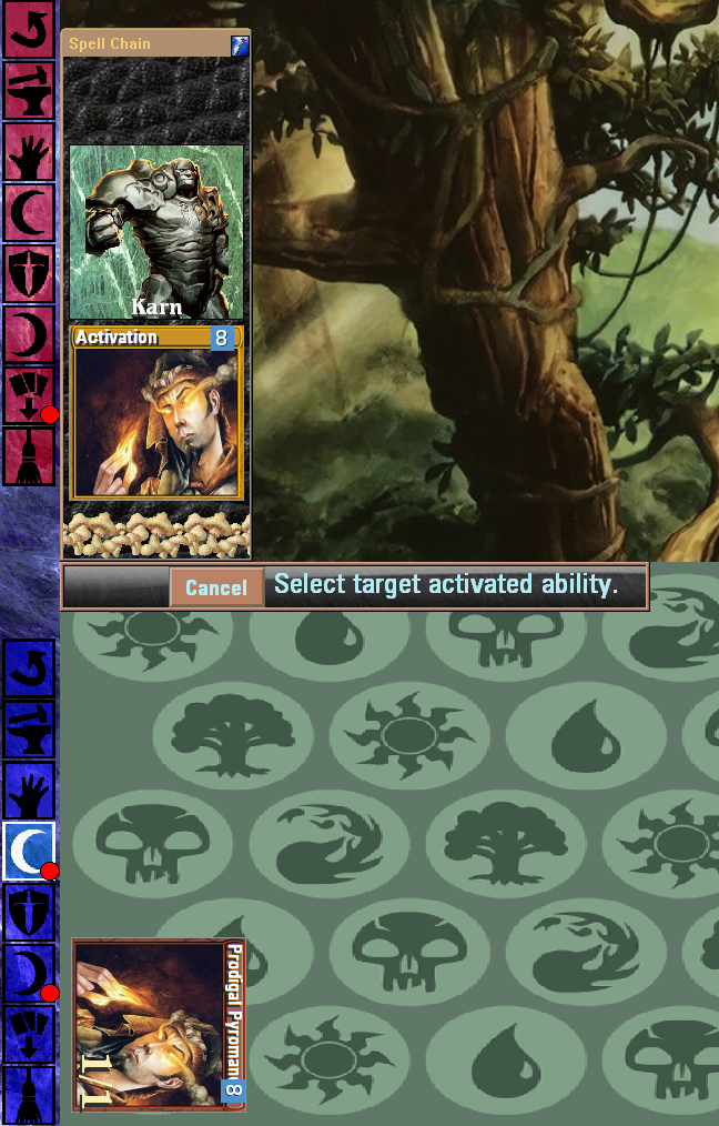Here's the setup; I'm trying to target Prodigal Pyromancer's ability with Stifle (Stifle is currently invisible and selecting targets):